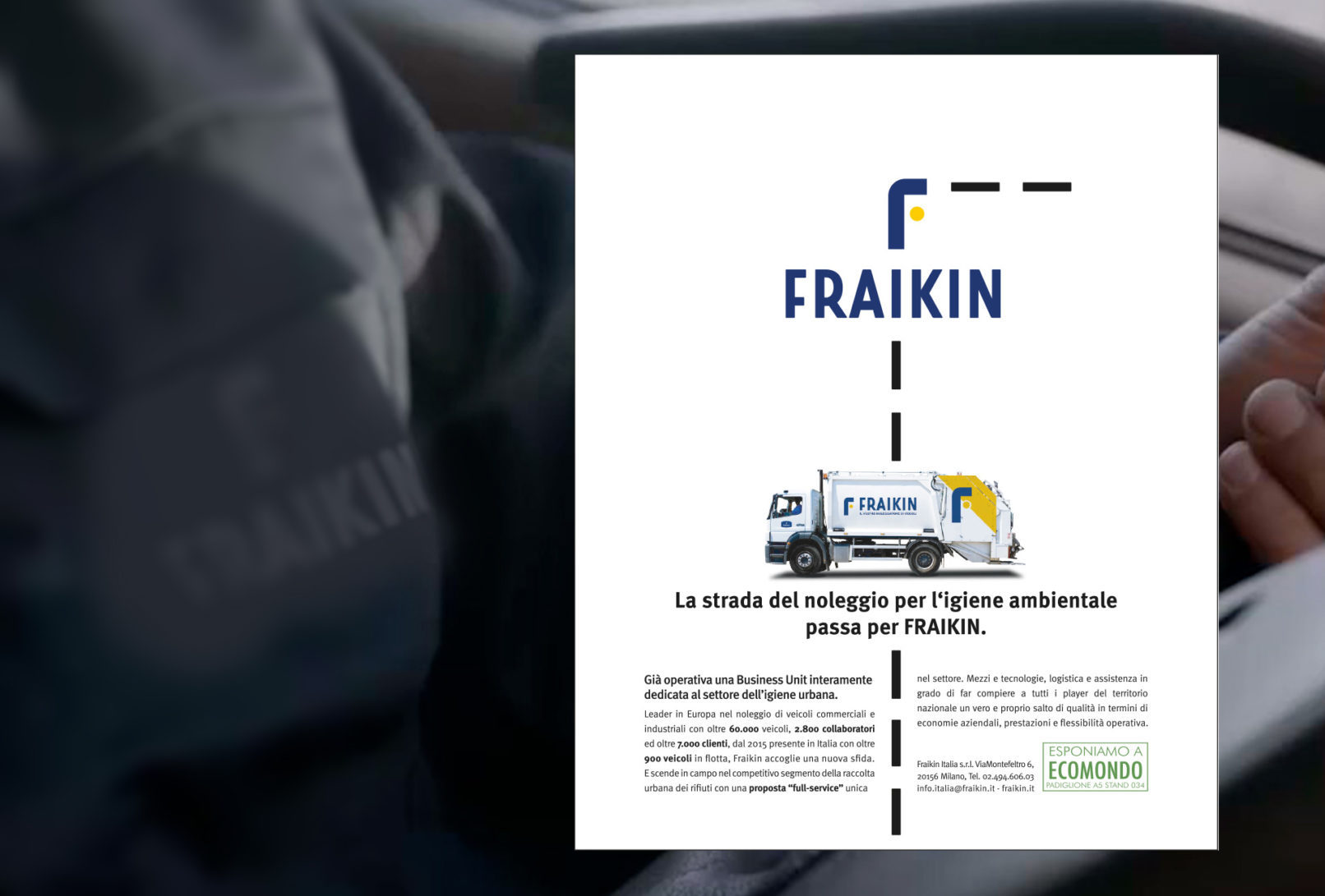 Campagna Adv su stampa specializzata e abbigliaggio mezzi, stand Ecomondo 2019